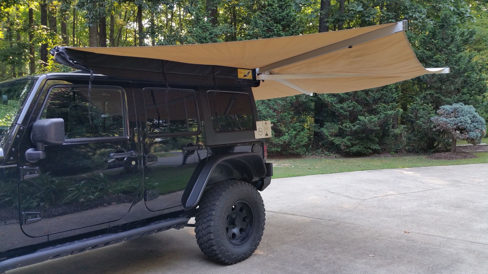 Ships free the eezi awn bat 270 awning an innovative design that can be deployed by one person in less than a minute creating 270 degrees of free standing coverage around your vehicle.